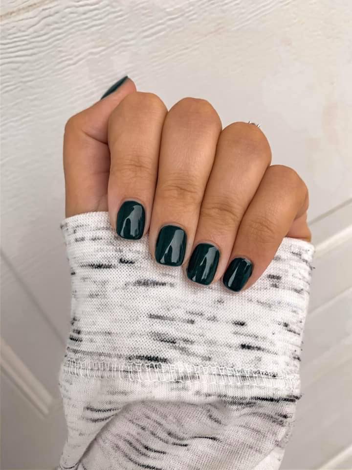 This dark green polish is precious as a gem with its pearly finish.
