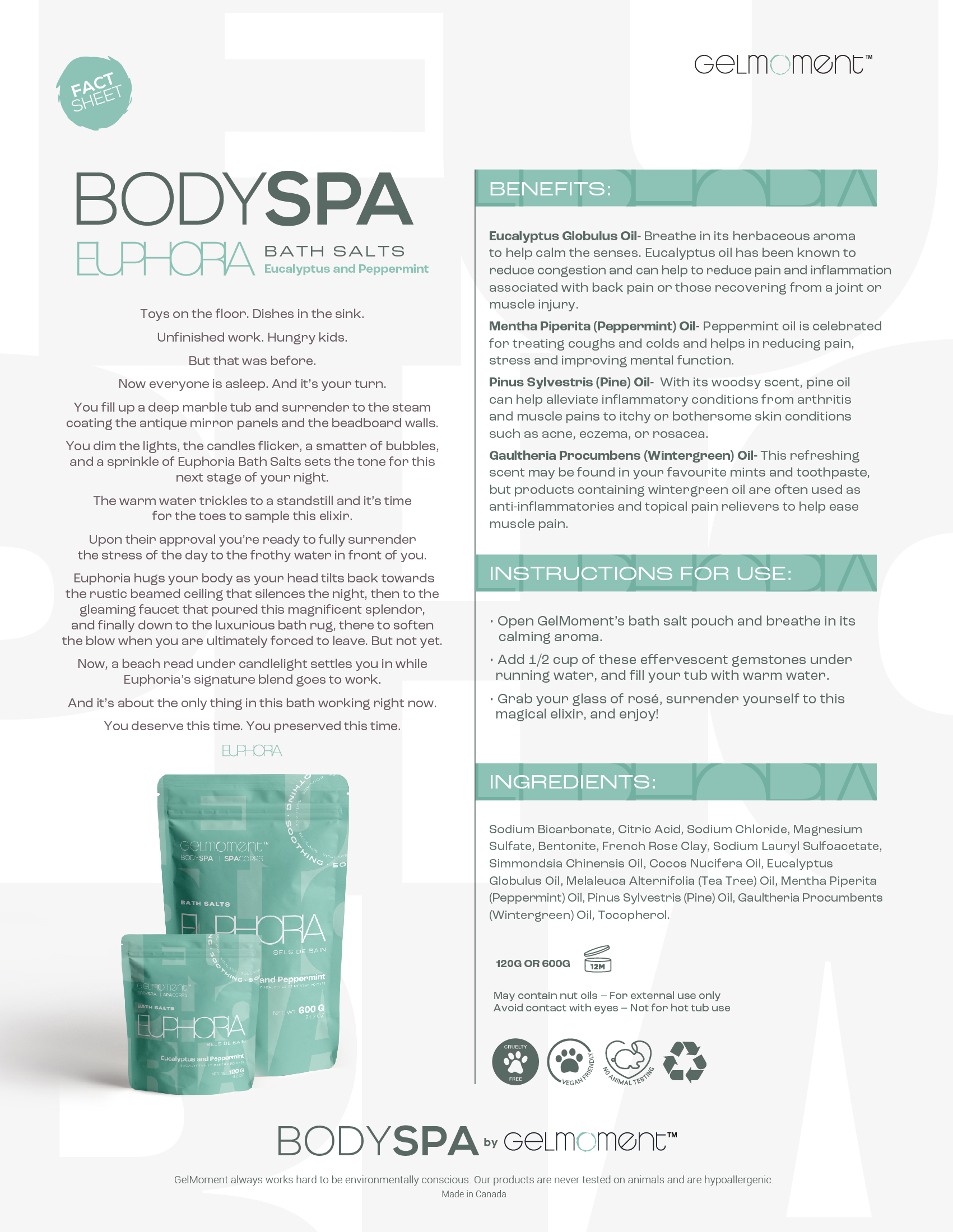 Euphoria Bath Salts - Eucalyptus & Peppermint - Small (120g)